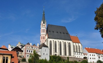 Architektonický skvost, jehož osmiboká novogotická věž se stala druhou dominantou Českého Krumlova. Kostel se příležitostně stává místem konání koncertů vážné hudby. Kostel sv. Víta je gotická trojlodní stavba pocházející z období 1407 - 1439. Byl ovšem vystavěn na základech starší stavby z roku 1309. V 17. a 18. století byl kostel rozšiřován a upravován. Gotický vstupní portál pochází z roku 1410.